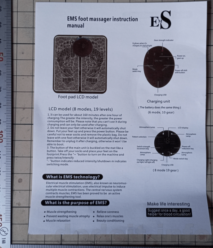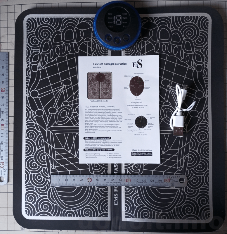 足置きマットは薄いウレタンマットみたいな質感で、恐らく足つぼの位置とか全く関係なく導電マットが一面に敷かれているだけかと思います。