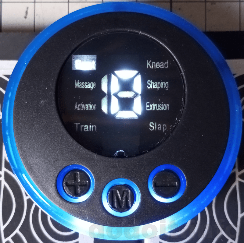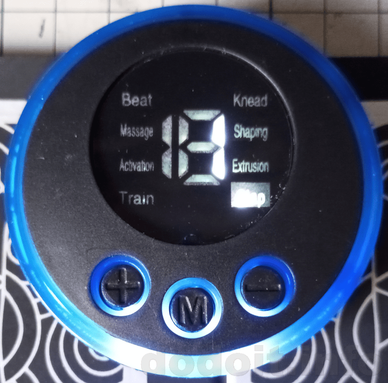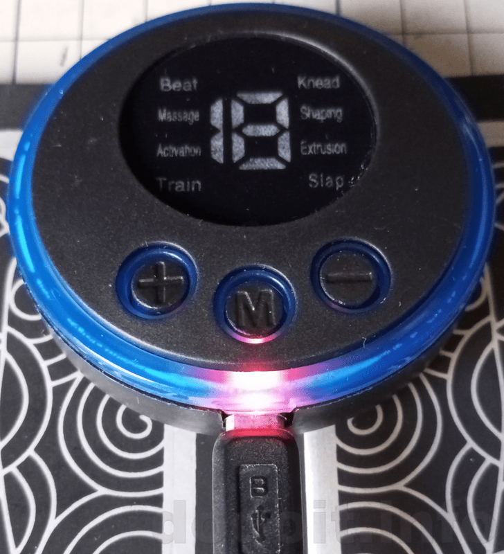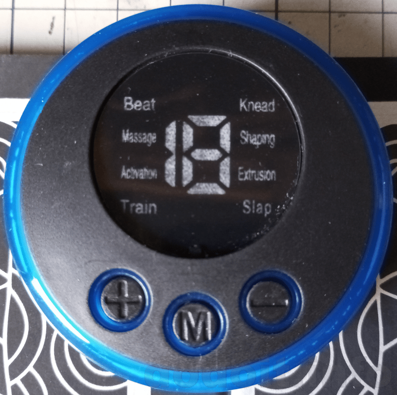 また+ボタンを押す毎に電源オフから0→1→2と強さが増えて行って最大で19まで増やせますが、Mを押してモード移行すると2以上だった場合は1に戻されます。