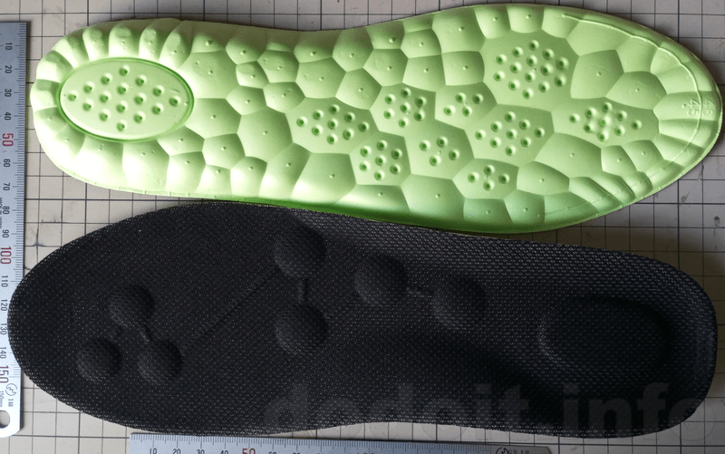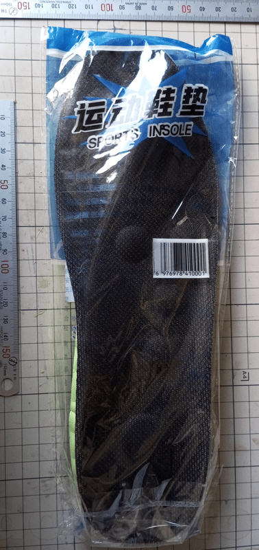 というわけで、中華通販の割には若干お高めなこのブツ、凸凹しているのでサイズ計測はし難いですが踵辺りで厚いところは約10mm程度の厚みがあります。