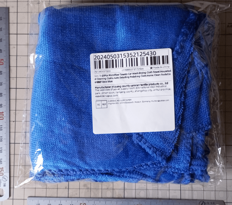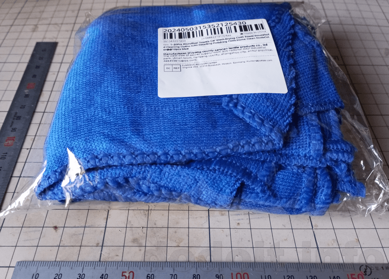 一応マイクロファイバーと謳っているタオル。1-20Pcsとありますが10Pcsでの購入です。1枚辺り元値で24円。