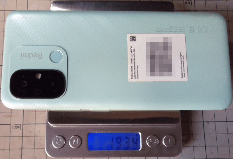 ついでにRedmi 12Cも測ってみましたが、こちら約193.4gということでほぼほぼ同じ重量ですね。