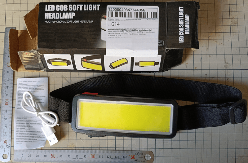 『Powerful COB Headlamp Type-c/USB Rechargeable Head Flashlight Built-in Battery Outdoor Fishing Camping Lantern Waterproof Torch』お値段573円。割引を適用して価格按分した値引き後102円。